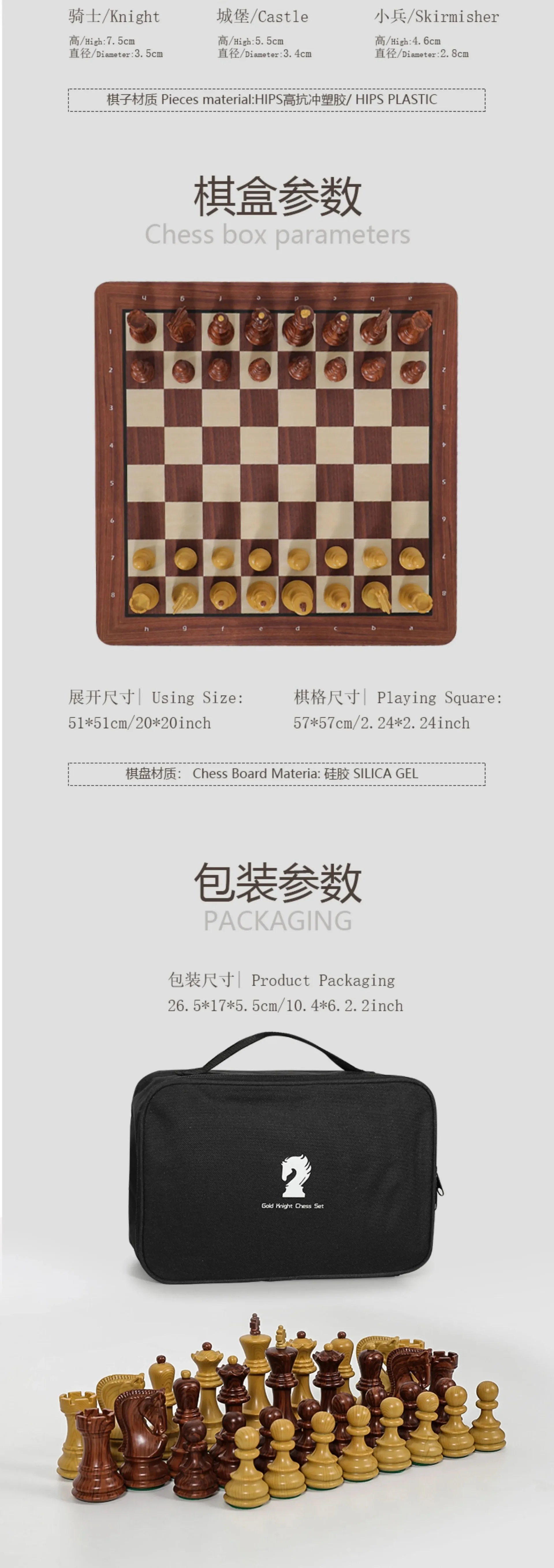 Luxury  Children's Portable International Chess Folding Chessboard Game Toys  Weighted  Double Queen Chess Pieces Storage Bag